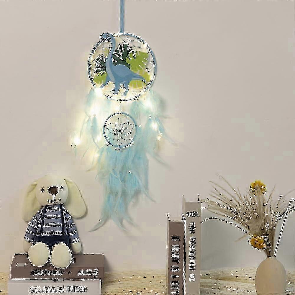 Dinosaur Dream Catchers for Kids, Feather Wall Hanging Decor, Dino Night Light Gift for Boys & Girls