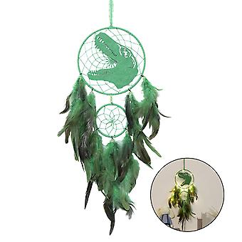 Dinosaur Dream Catcher Ornament Kids Faux LED Light Feather Dream Catcher Handmade Home Decor Birthday Gift