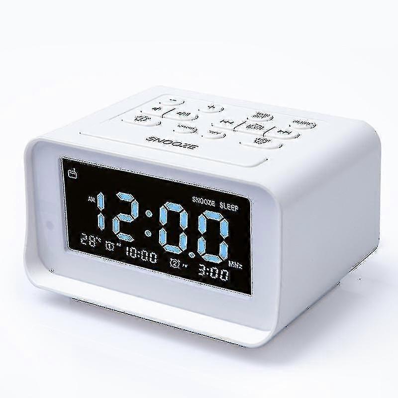 Digital Alarm Clock Radio With Dual Usb Chargers For Bedroom, Adjustable Alarm Volume And Brightness (white)