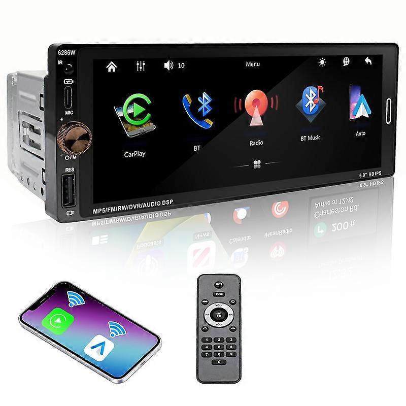 6.9" Single DIN Car Radio Wireless CarPlay Car Bluetooth 5.2 AM FM Radio IPS 1280x480 Backup Camera
