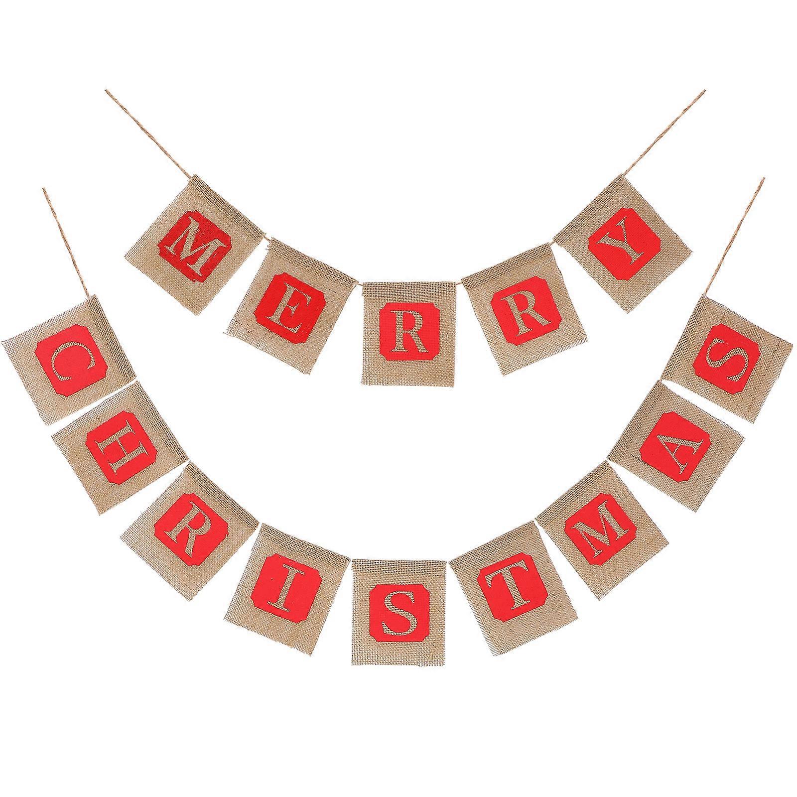 Merry Christmas Banner with Burlap Material and Assorted Colors Perfect for Holiday Decoration 1.4m 1.8m