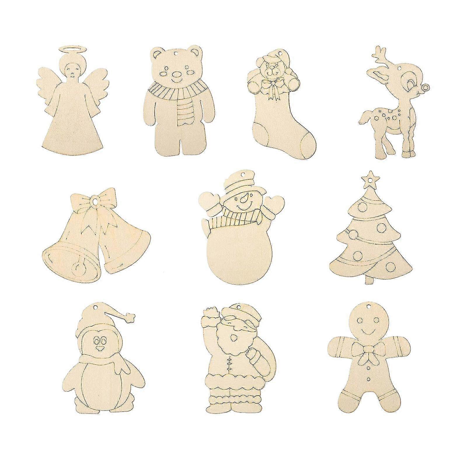 Exquisite Christmas Wooden Pendant Xmas Wooden Hanging Ornaments For Balcony Door Home 10pcs