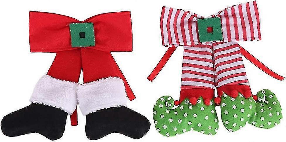Exquisite Christmas Bow Ornaments With Santa Claus Elf Design Christmas Tree Door Fireplace Hanging Decorations