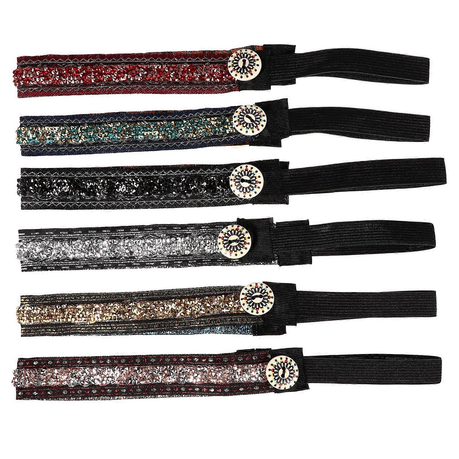 Stretchy Mask Hairband with Buttons 6pcs Pack, Comfortable Breathable Fabric, Reduces Ear Pressure for Daily Wear & Sports Includes Silver, Red,