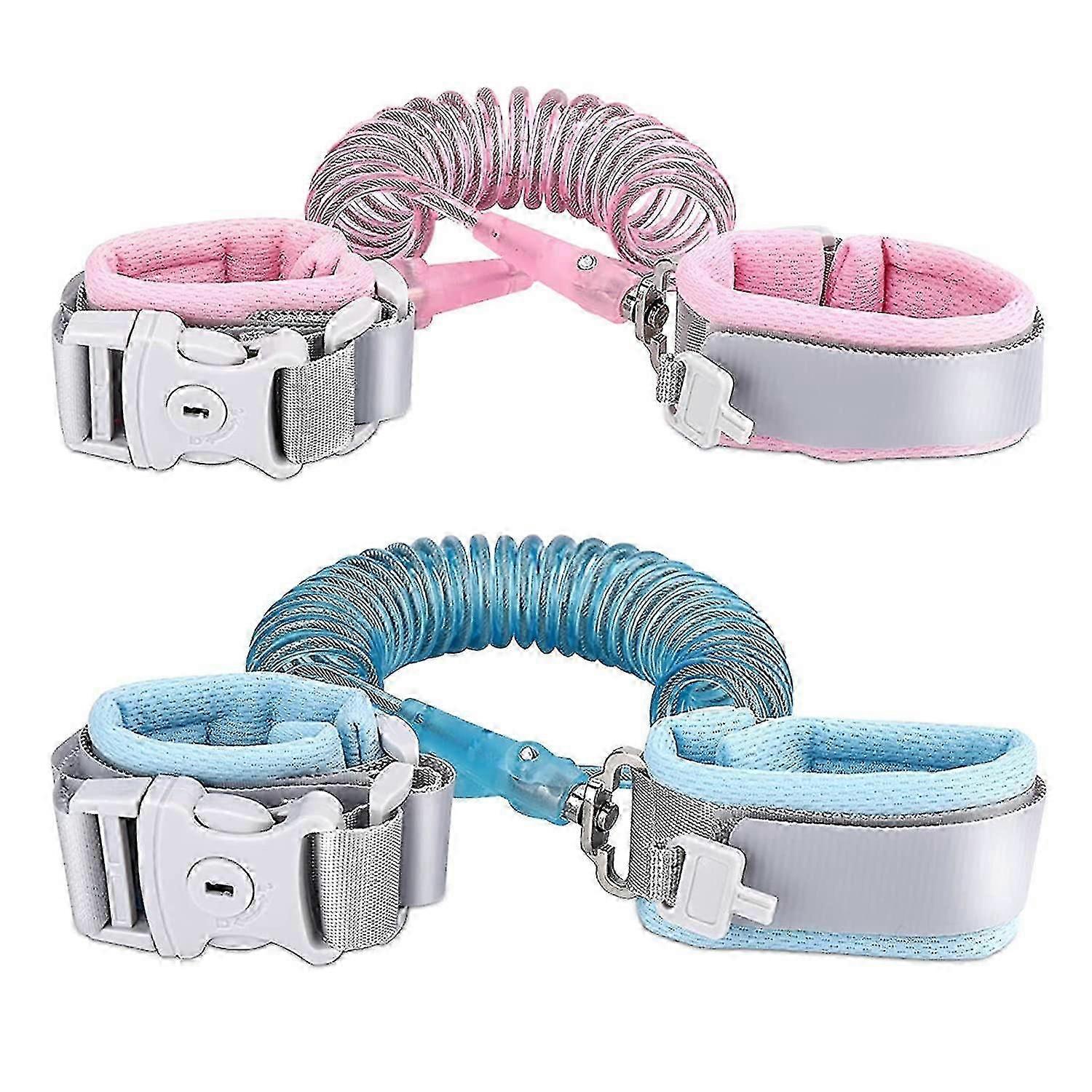 Anti-lost Wrist Tie (8.2'+66.56), Wrist Leash For Toddler Kids With Key Lock, Set Of 2, Pink And Blue