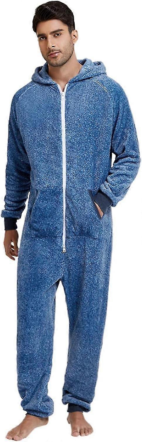 Mens Fleece Flannel Onesie Pajamas Winter Thermal Zipper Hooded Jumpsuit Casual One-Piece Fuzzy Warm Sleepwear Loungwear Tw
