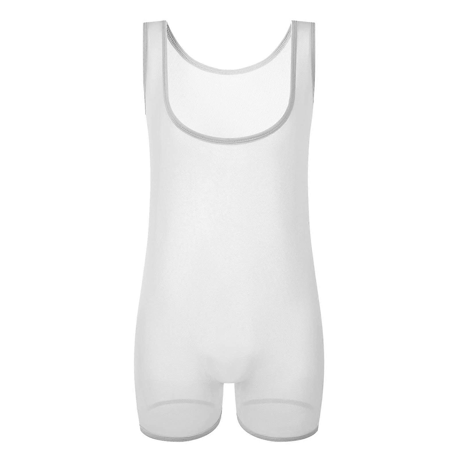 Men's Lace Bodysuit Mesh Lingerie Jumpsuit Sleeveless Singlet Sexy Underwear White XL