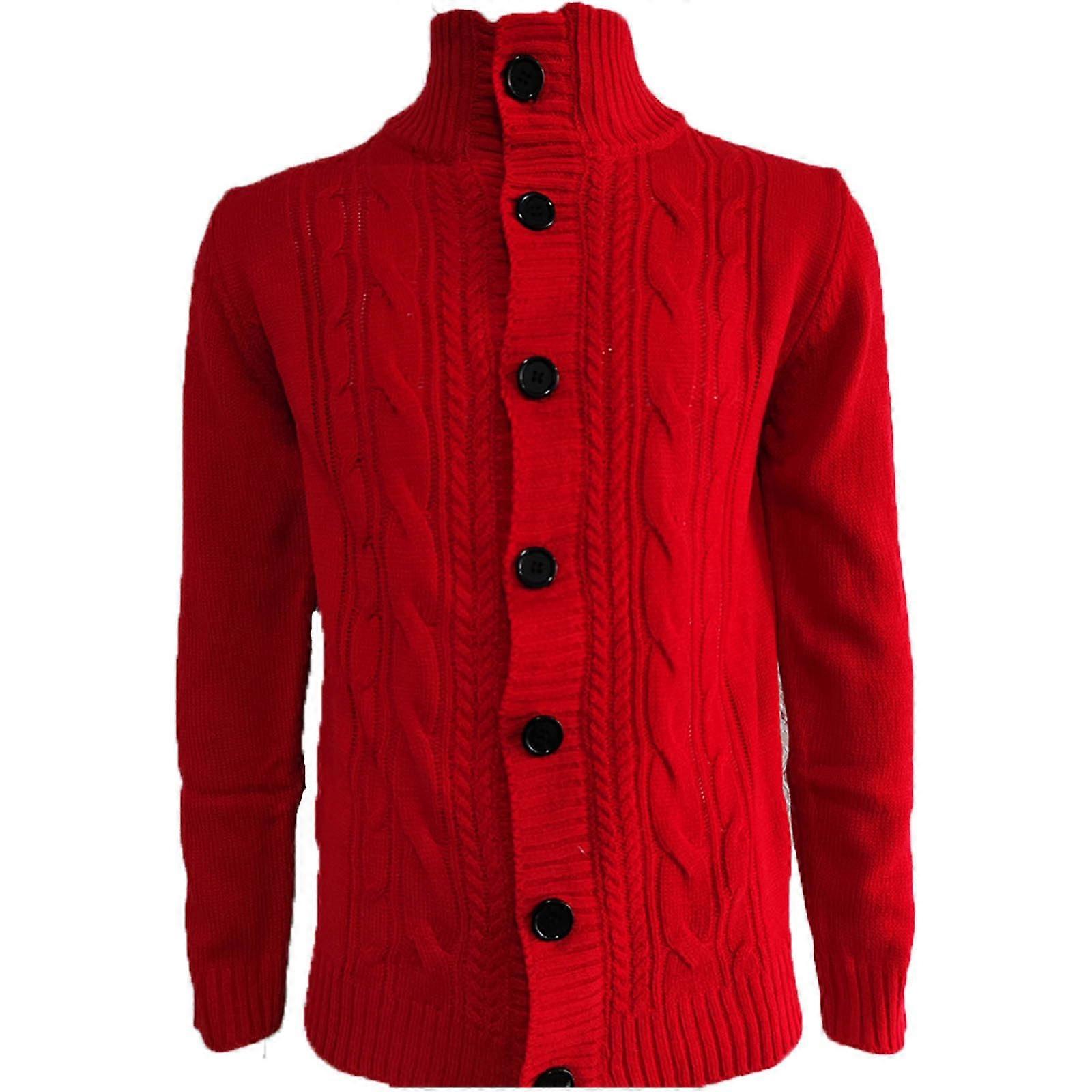 Men's Long Sleeve Knitted Cardigan Pullover Jumper with Ribbed Stand-Up Collar in 3XL Rot for Autumn Winter Lightweight Sports Wear