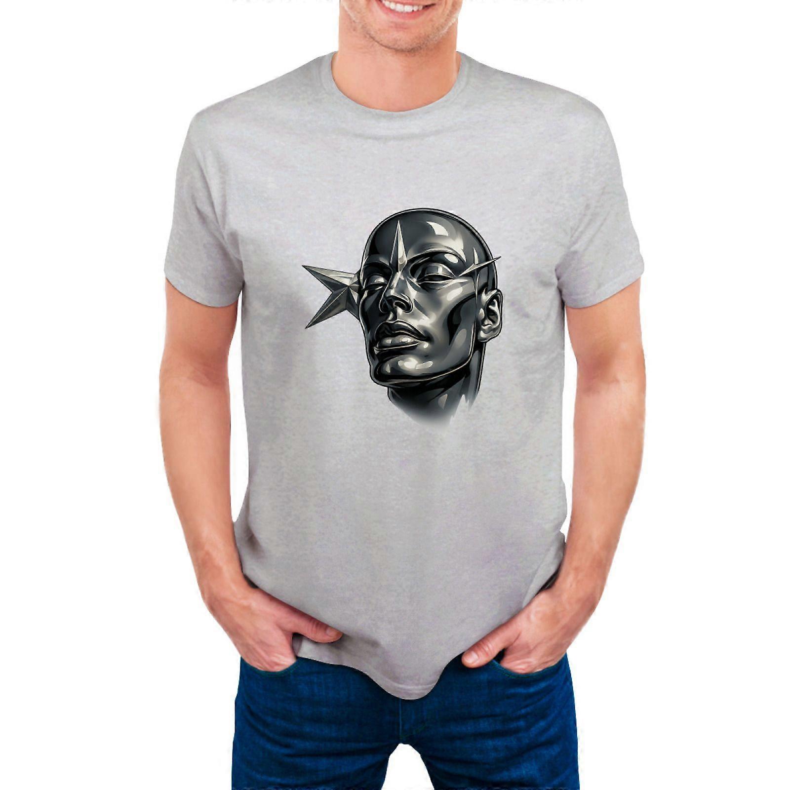 Mens Futuristic Chrome Face T-Shirt Cyberpunk Star Head Graphic Tee Streetwear Short Sleeve Shirt Soft Crew Neck Sizes XS3XL 14 Colors