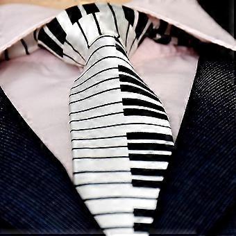 رجالي مفاتيح البيانو الأسود والأبيض ربطة عنق نحيف ضيق حفل زفاف ربطة عنق هدية - HE
