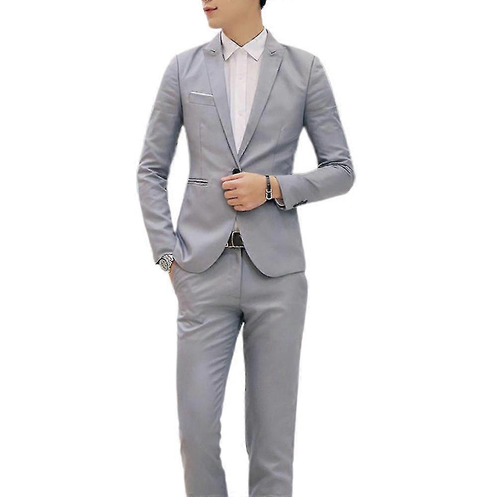 Men Business Formal Wedding Party Tuxedo Suit Blazer Coat Jacket + Pants Trousers 2 Pieces/set (grey)
