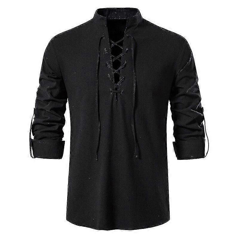 Mens Scottish Jacobite Ghillie Kilt Shirts Medieval Renaissance Pirate Costume Long Sleeve Lace Up Henley Shirt Men Camisas Xxl
