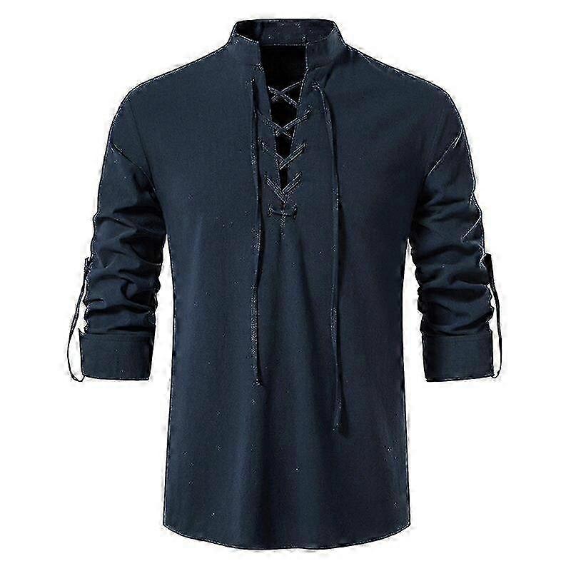 Mens Scottish Jacobite Ghillie Kilt Shirts Medieval Renaissance Pirate Costume Long Sleeve Lace Up Henley Shirt Men Camisas Xxl