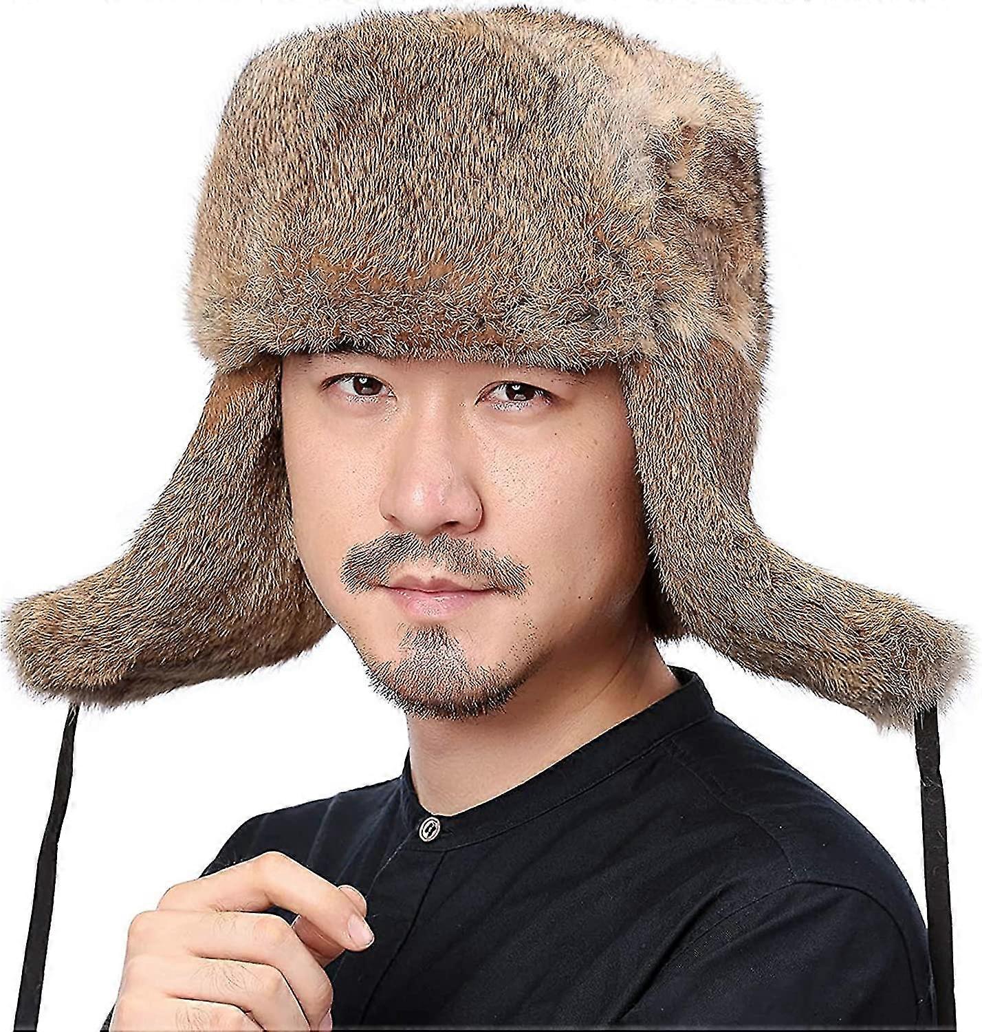 Mens Fur Hat Rabbit Fur Russian Ushanka Hats Earflap Trapper Hat For Winter