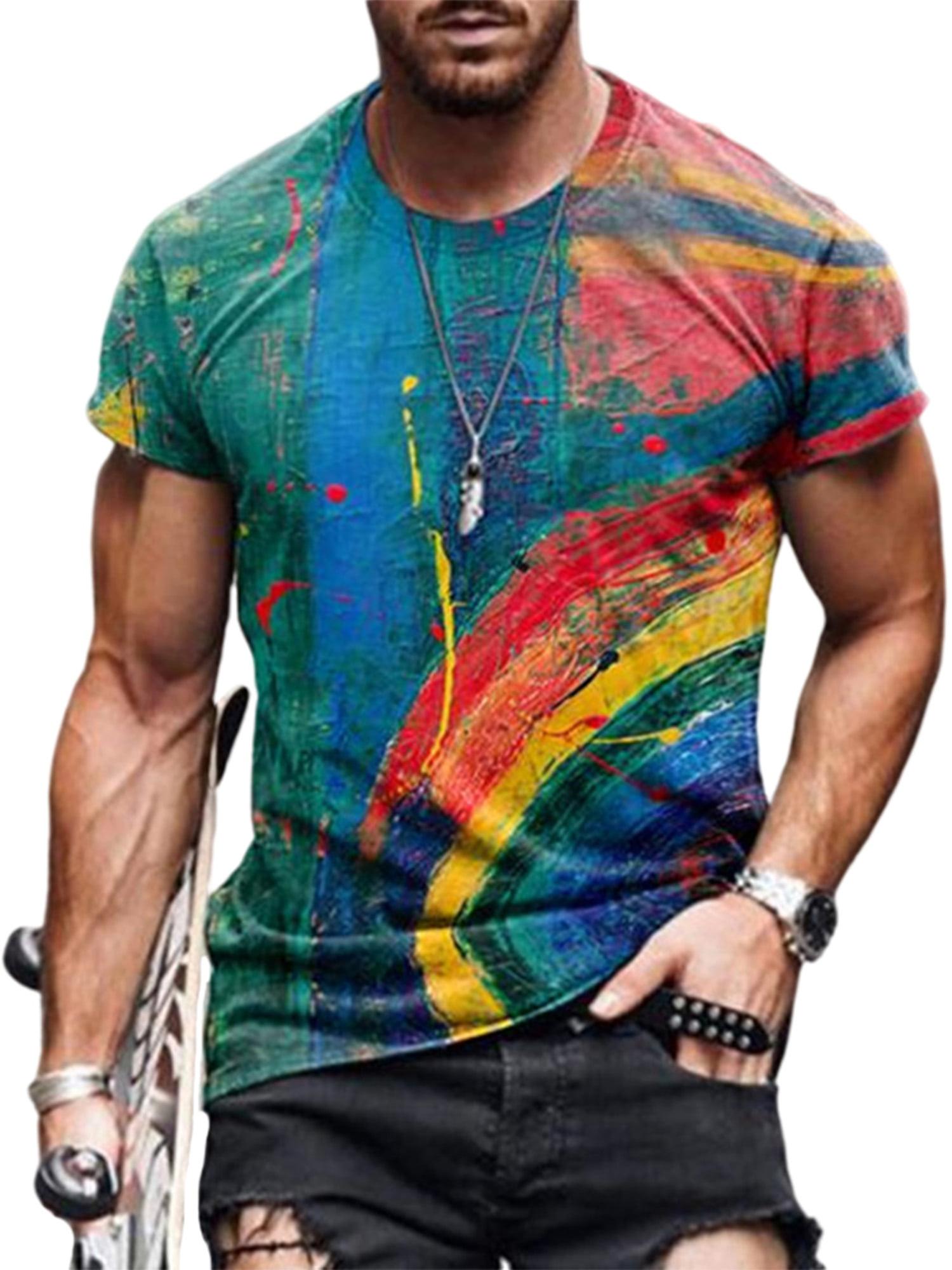 Mens Hip Hop Tie-dyed Hipster T Shirt Graphic Optical Illusion Tee Shirt Print Short Sleeve O Neck Casual Tops