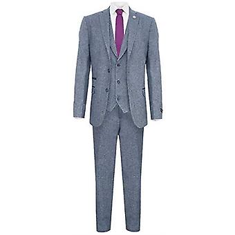 Mens Light Blue 3 Piece Tweed Suit Herringbone Wool