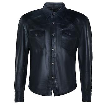 Mens Black Leather Slim Fit Shirt Jeans Jacket