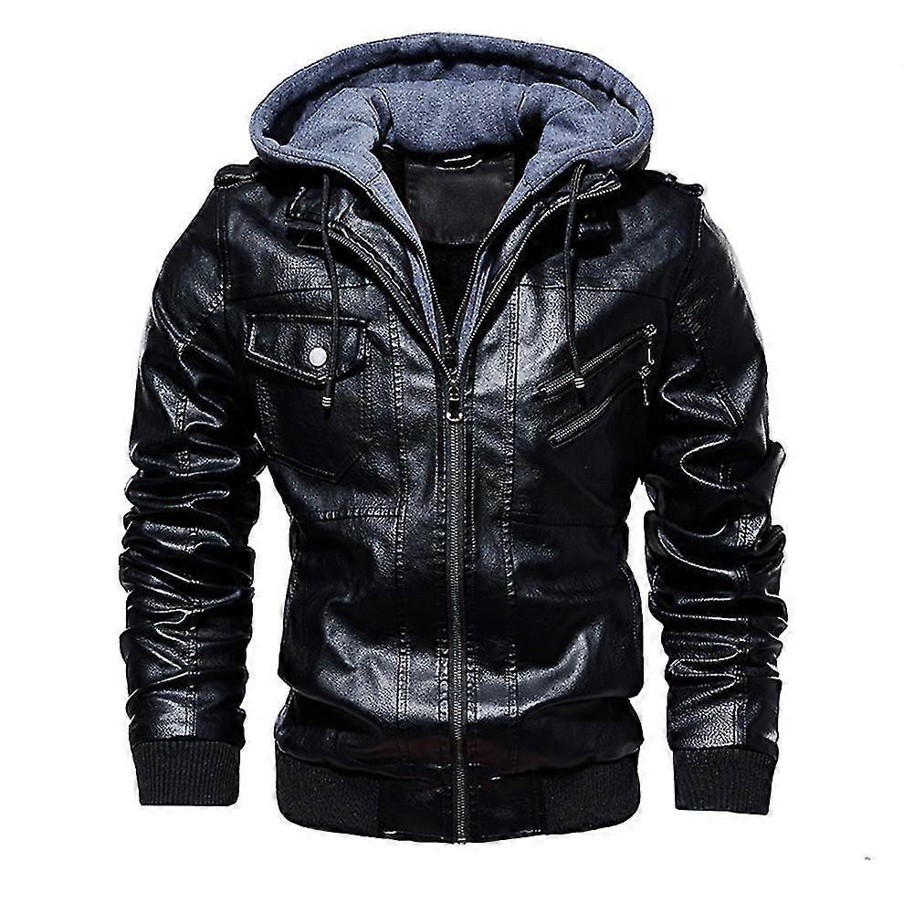 Mens Pu Leather Outwear Hoodie Motorcycle Coat Biker Style For Fall Winter Warm Coat