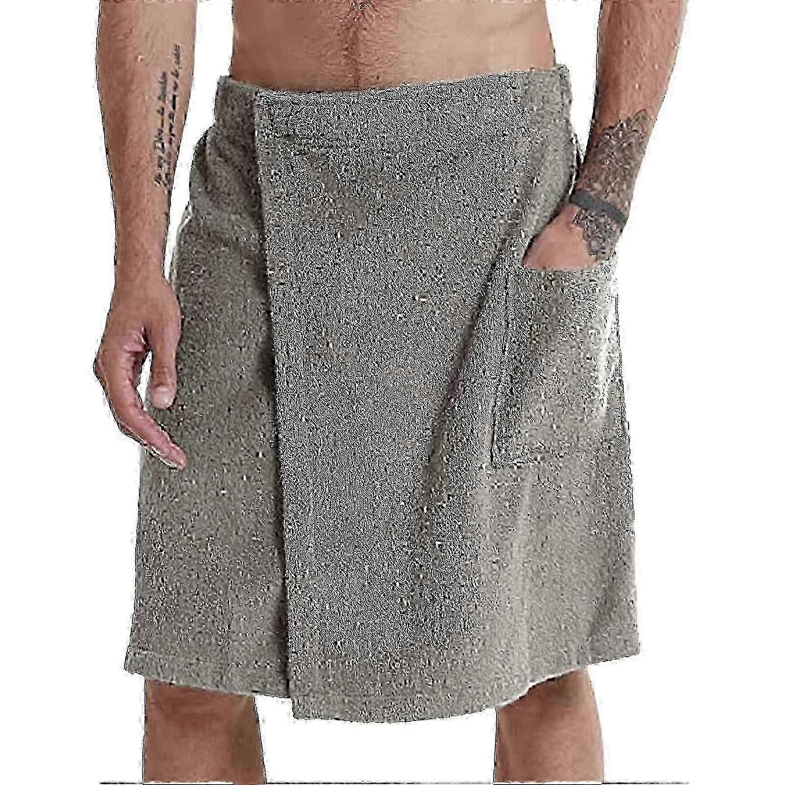 Mens Adjustable Bath Towel Wrap - Wearable Towel Skirt with Pocket for Gym Shower Sauna Spa & Beach Cover Ups Grey M