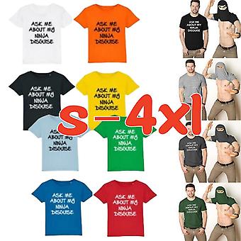 رجل مضحك تسألني عن بلدي النينجا تمويه الوجه تي شيرت زي الفكاهة الرسم