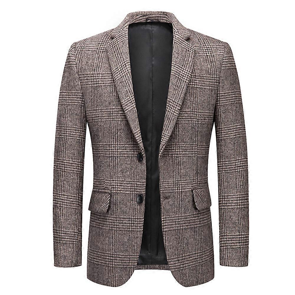 Mens Plaid Blazer Tweed Textured Retro Suit Wedding Outfit