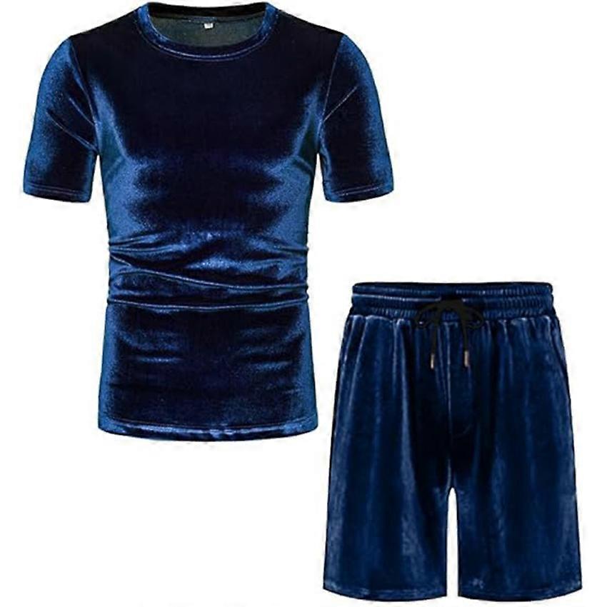 Mens 2 Piece 80s 90s Velvet Tracksuits Outfits Casual Short Sleeve Velvet Shirt Sets