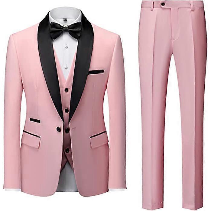Mens 3 Piece Suit Slim Fit Dress Tux Suit Solid Color Wedding Classic Tuxedo Set