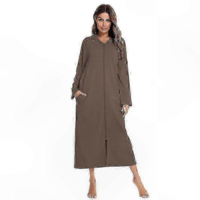 Soft Hooded Robe for Women - Full Length Zip-Up Cotton Lounger with Long Sleeves and Zippered Front Closure Nightwear Kimono