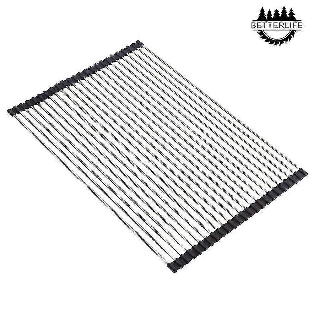 BPA-Free Roll-Up Dish Drying Rack - Foldable Silicone-Coated Stainless Steel Sink Drainer for Fruits, Vegetables & Plates - 47x38cm Black
