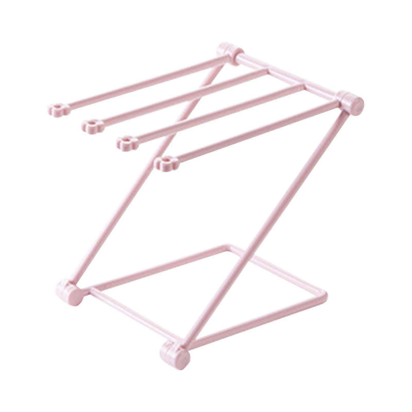 Countertop Dishcloth Drying Rack 4 Arms Folding Vertical Hand Towel Stand Dish Rag Storage Holder for Kitchen Light Pink