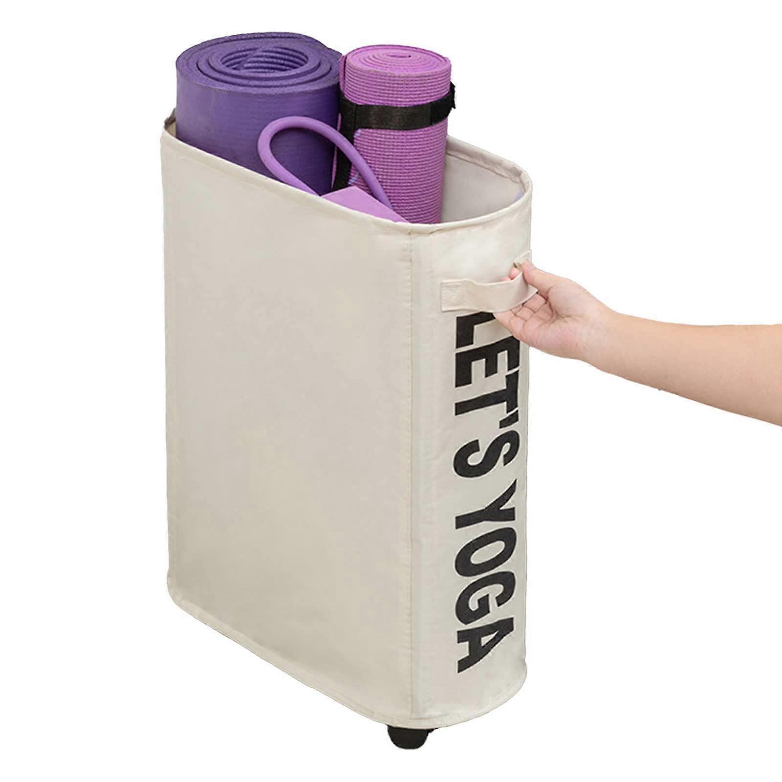 Yoga Mat Storage Rack, Yoga Mat Storage Basket with Wheels, Home Gym Storage Rack for Foam Roller, Yoga Strap and Resistance Bands. (White)