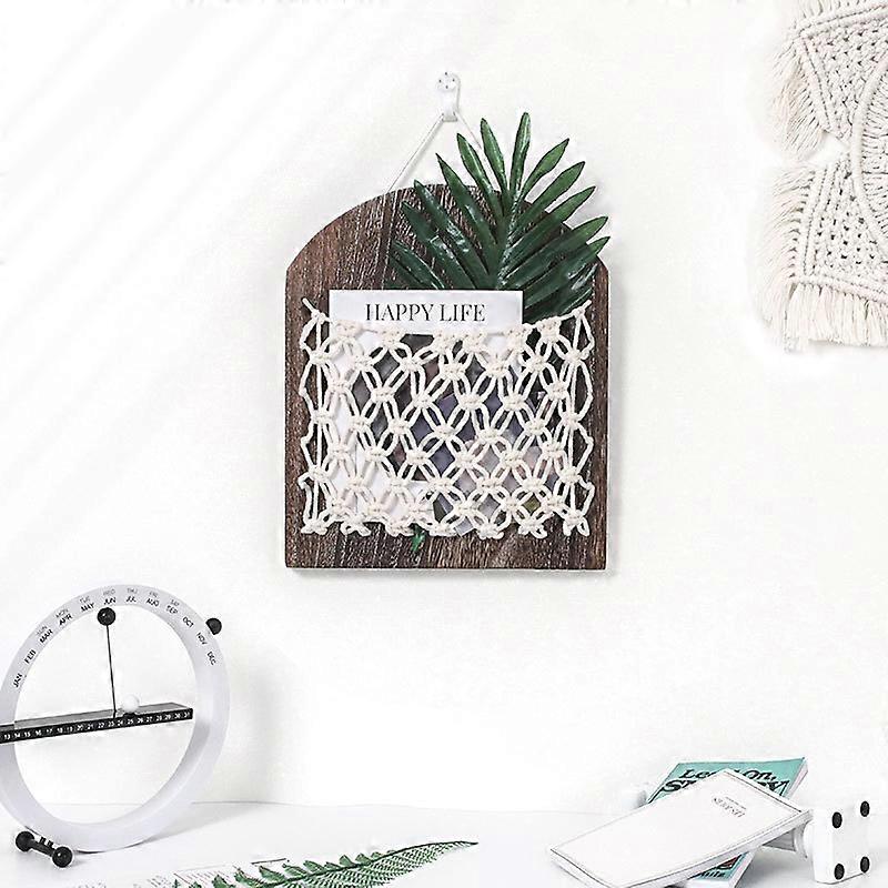 Wooden Wall-Mounted Storage Rack Multifunctional Woven Hanging Pockets for Home Living Room Bedroom