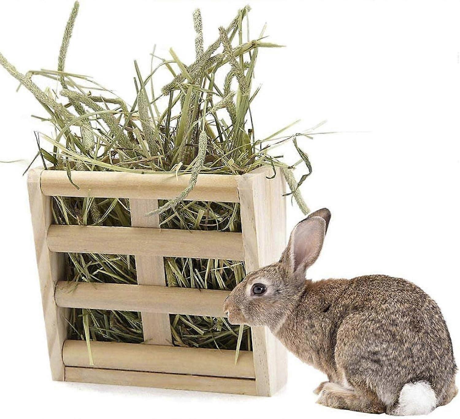 Rabbit Hays Feeder Rack, Wooden Fixed Grass Manger Hays Dispenser Small Animal Automatic Feeder for Chinchillas Guinea Pigs Bunny