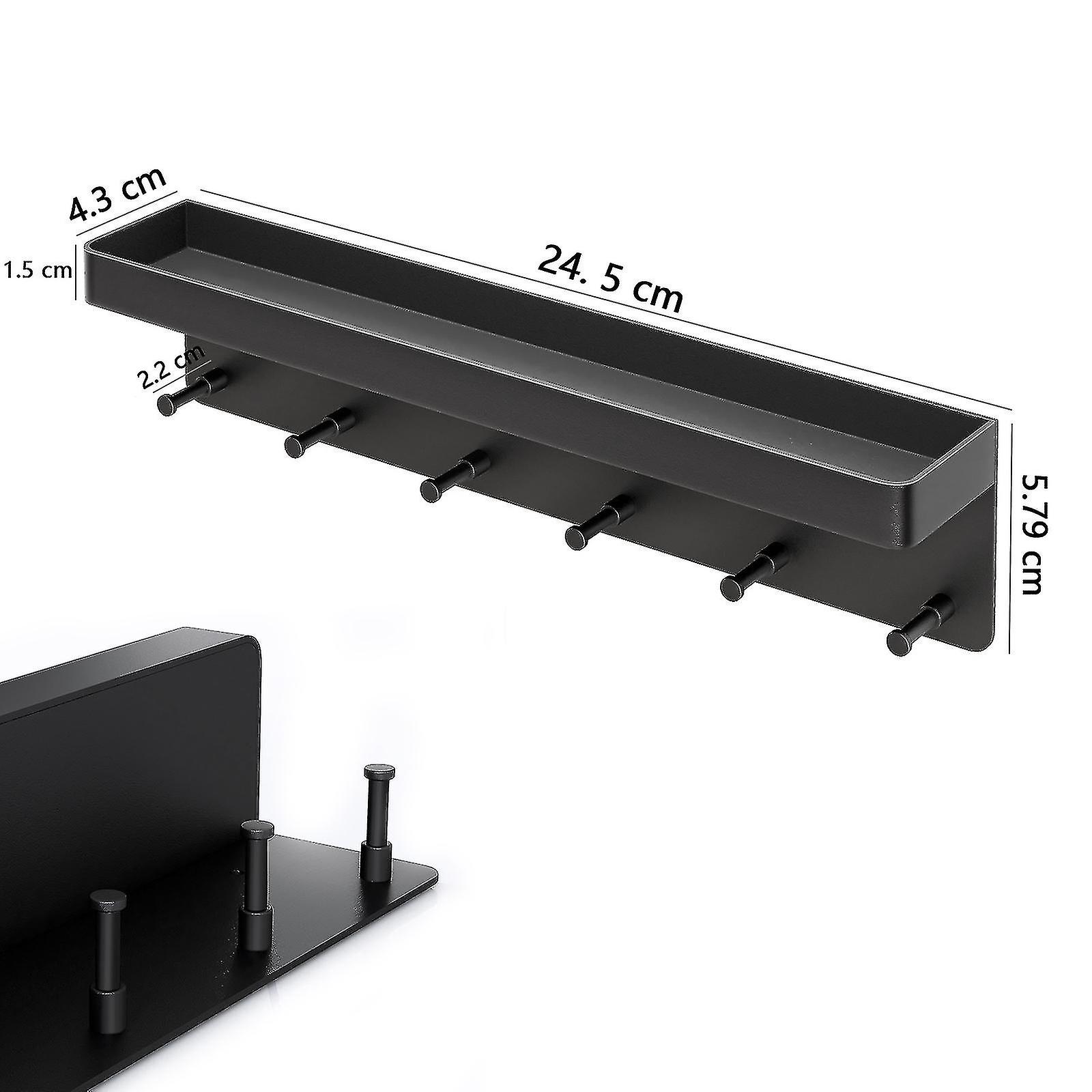 Key Rack, Without Drilling With Shelf, With 6 Hooks Hallway (black)