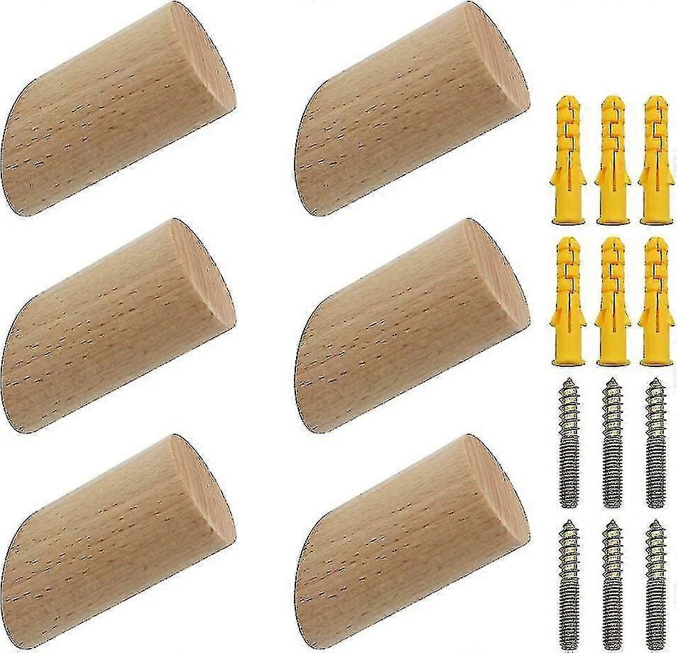 Wooden Duty Robe Hooks Hat Rack | Hanging Bath Towel Hooks Clothes Rack Wall Hooks, 6 Pack Coat Hooks Wall Mount Antique Wooden Hooks Heavy