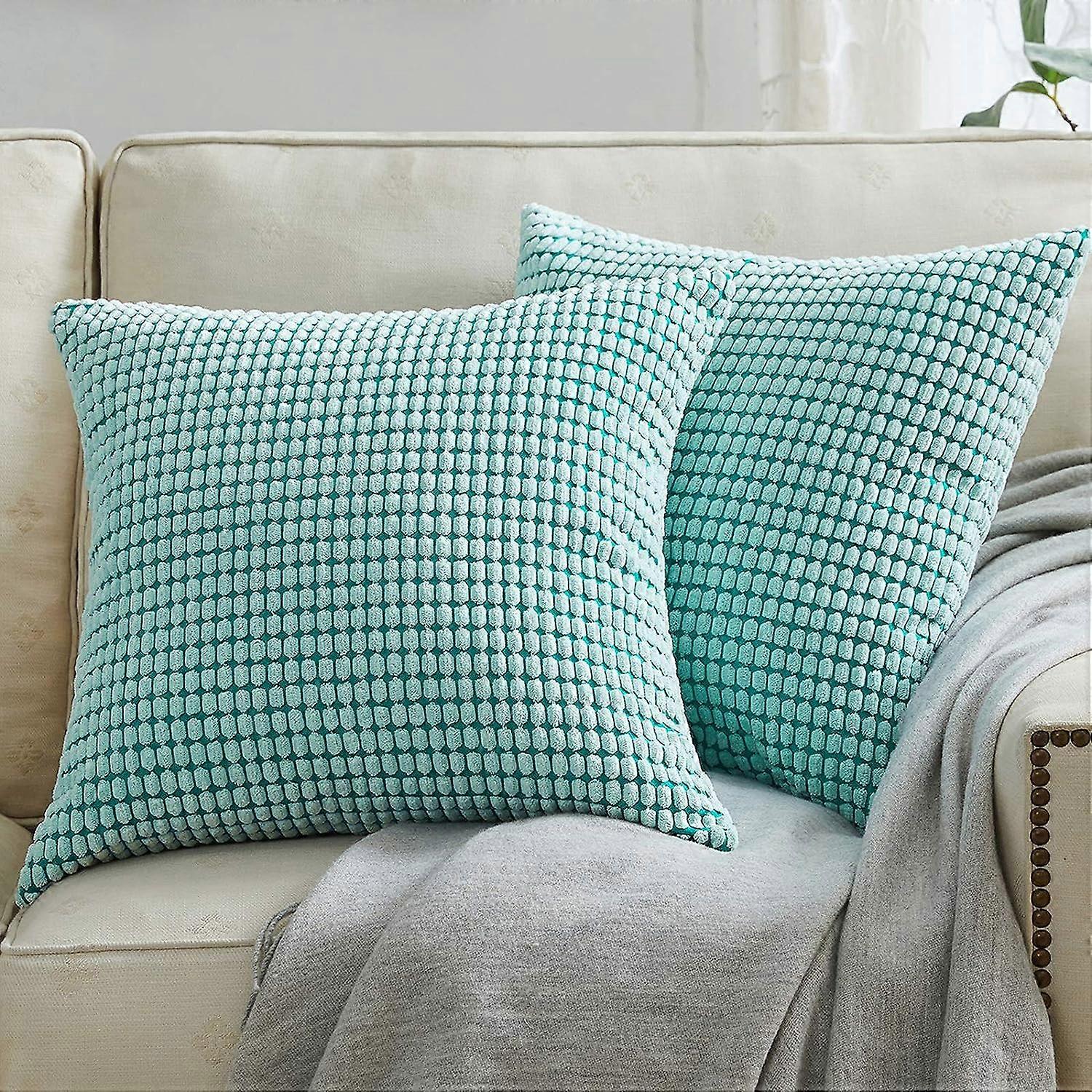 Throw Pillow Covers - Set of 2 Pillow Covers 18x18, Decorative Euro Pillow Covers Corn Striped, Soft Corduroy Cushion Case, Home Decor for Couch, Bed,