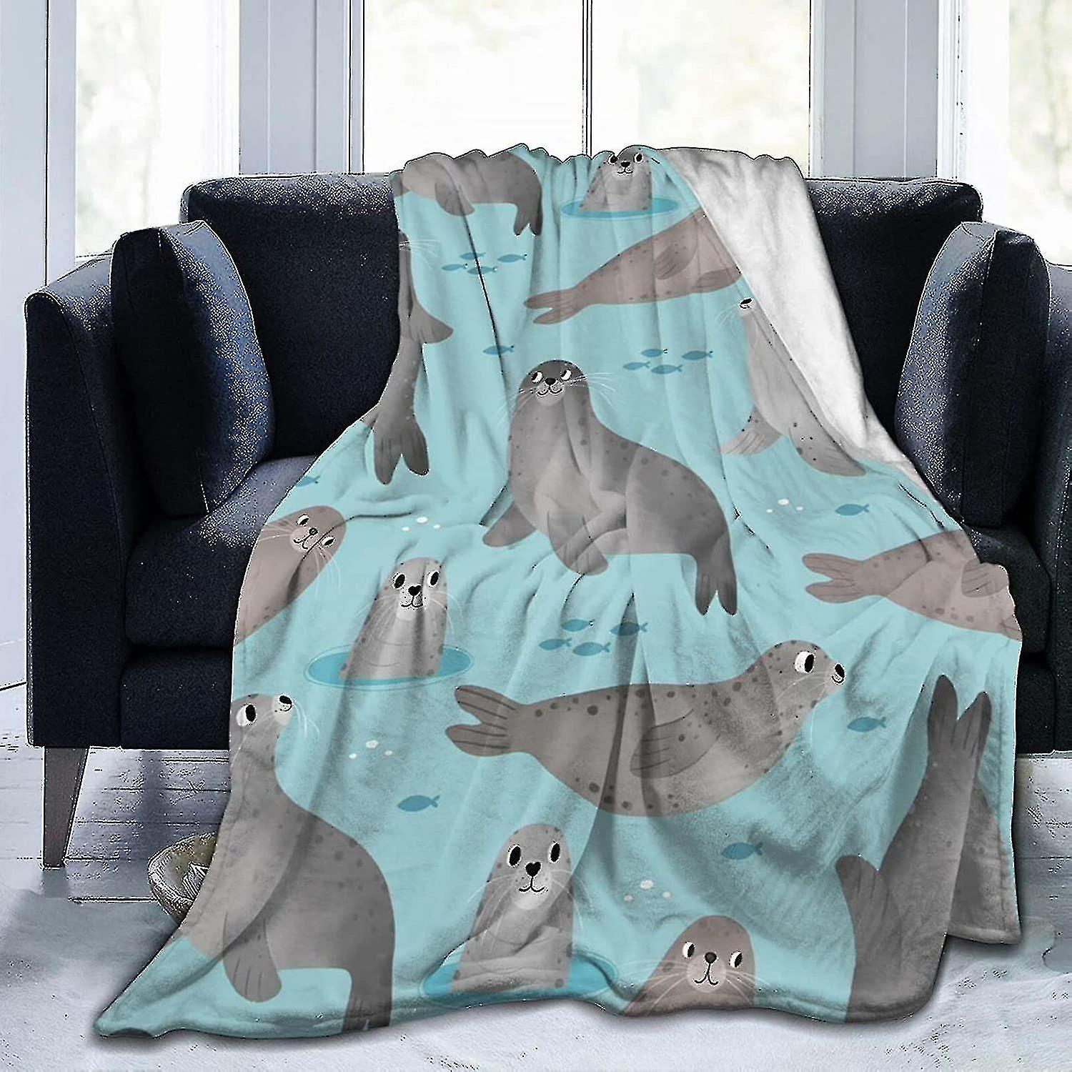 Throw Blanket Cute Seal Throw Blanket Flannel Fleece Blanket Super Soft And Comfortable Bedding All Season Warmth And Light Sofa Blanket-yuyu