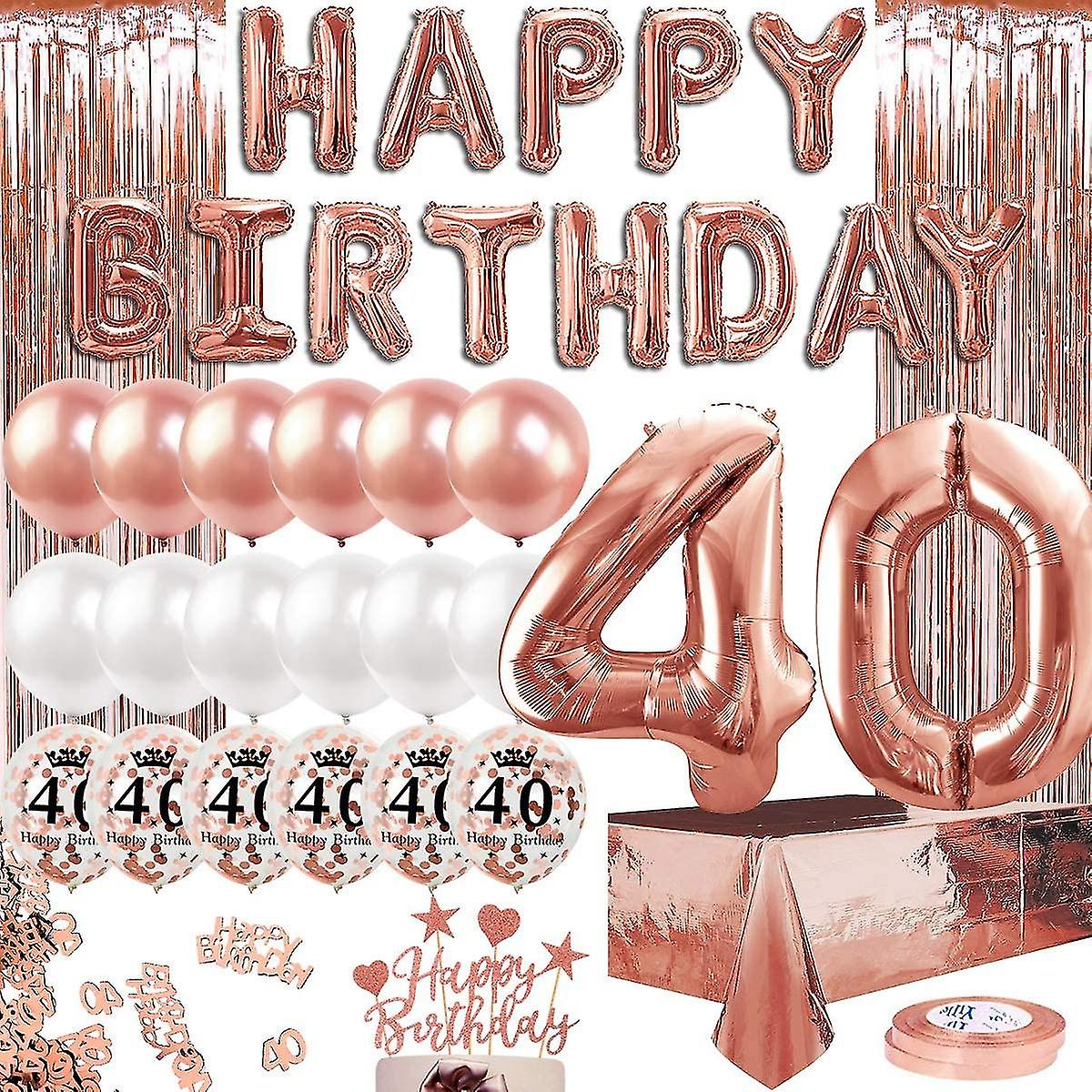 Rose Gold Birthday Party Decoration For Girls Happy Birthday Banner 2 Fringe Curtain Foil Tablecloth Confetti Balloon Cake Topper Table Confetti Anniv