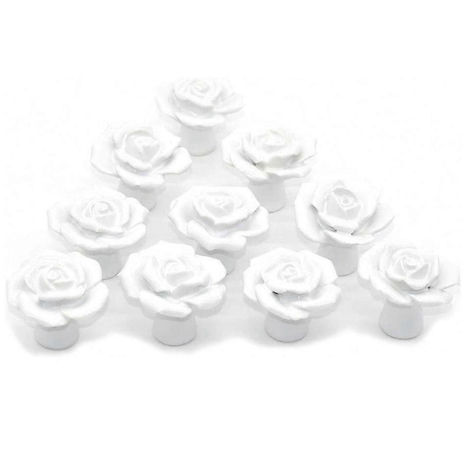 Rose Flower Ceramic Door Knob Dresser Cupboard Drawer Pulls Handles 10 Pack, White