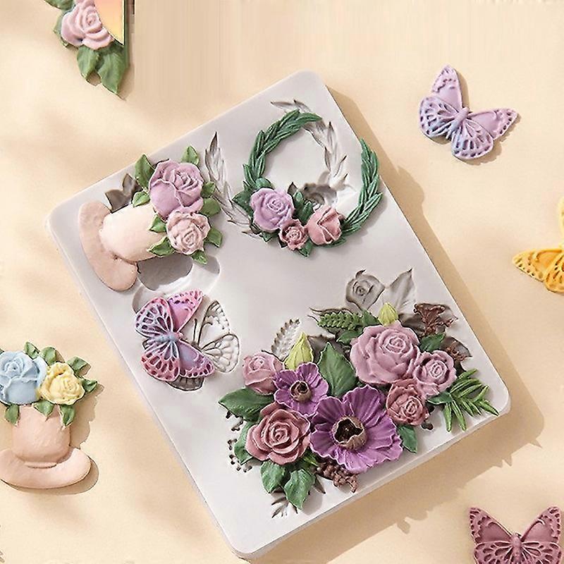 Rose Silicone Mold Butterfly Fondant Mould Flower Pot Bouquet Leaves Chocolate Cake Decorating Cupcake Topper Polymer Clay Tools