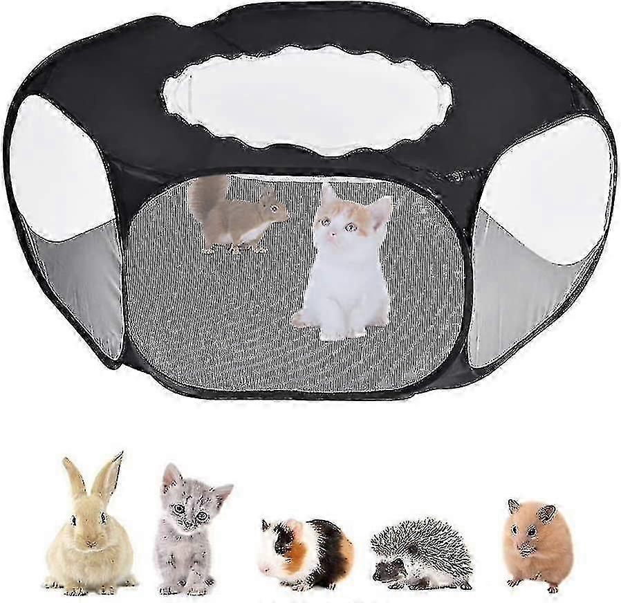 Small Animal Playpen, Transparent Breathable Pet Tent With Top Lid, Fence Foldable Indoor Outdoor Exercise Yard(black,1pcs)