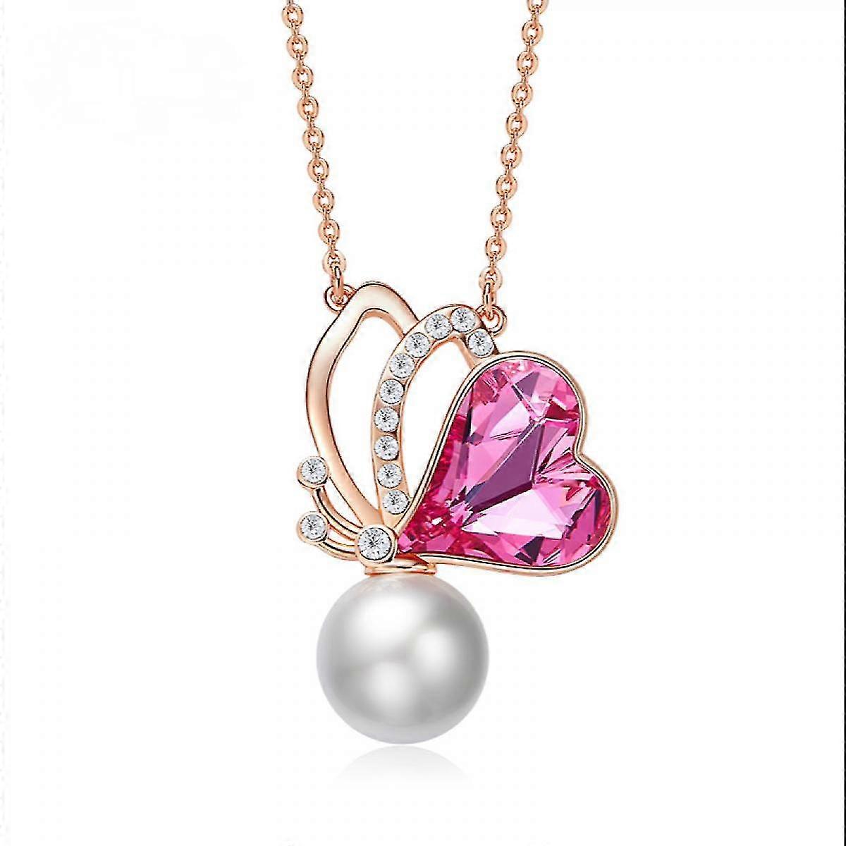 Romantic Valentine's Day Gift Pearl Necklace, Love Crystal Pearl Pendant Necklace Women's Birthstone Necklace, Butterfly