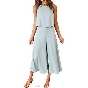 رويلامب المرأة الصيف 2 قطعة ملابس جولة الرقبة المحاصيل الأساسية أعلى اقتصاص واسعة الساق السراويل مجموعة بذلات