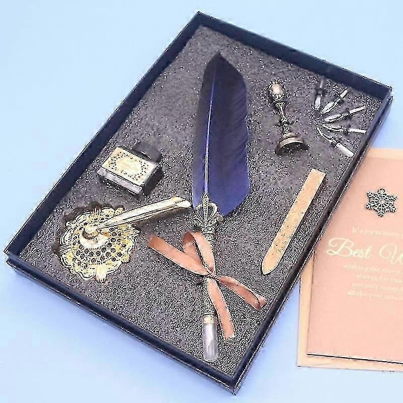 Feather Pen Set Fire Paint Seal Feather Pen Literary Desktop Pen Ornaments-17colors