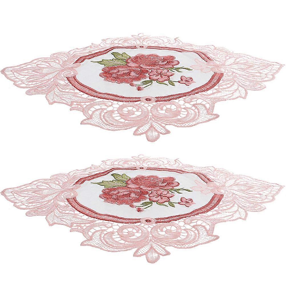 Rustic Table Placemat Decorative Cup Mat For Home Decoration Oval Shape Pink Color Milk Silk Material Dustproof Function 2Pcs
