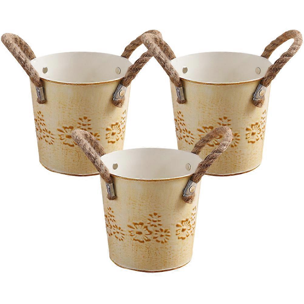 Rustic Antique Finish Metal Bucket Planter for Indoor Use Iron Material Style 3.9×3.9×3.7in 3Pcs