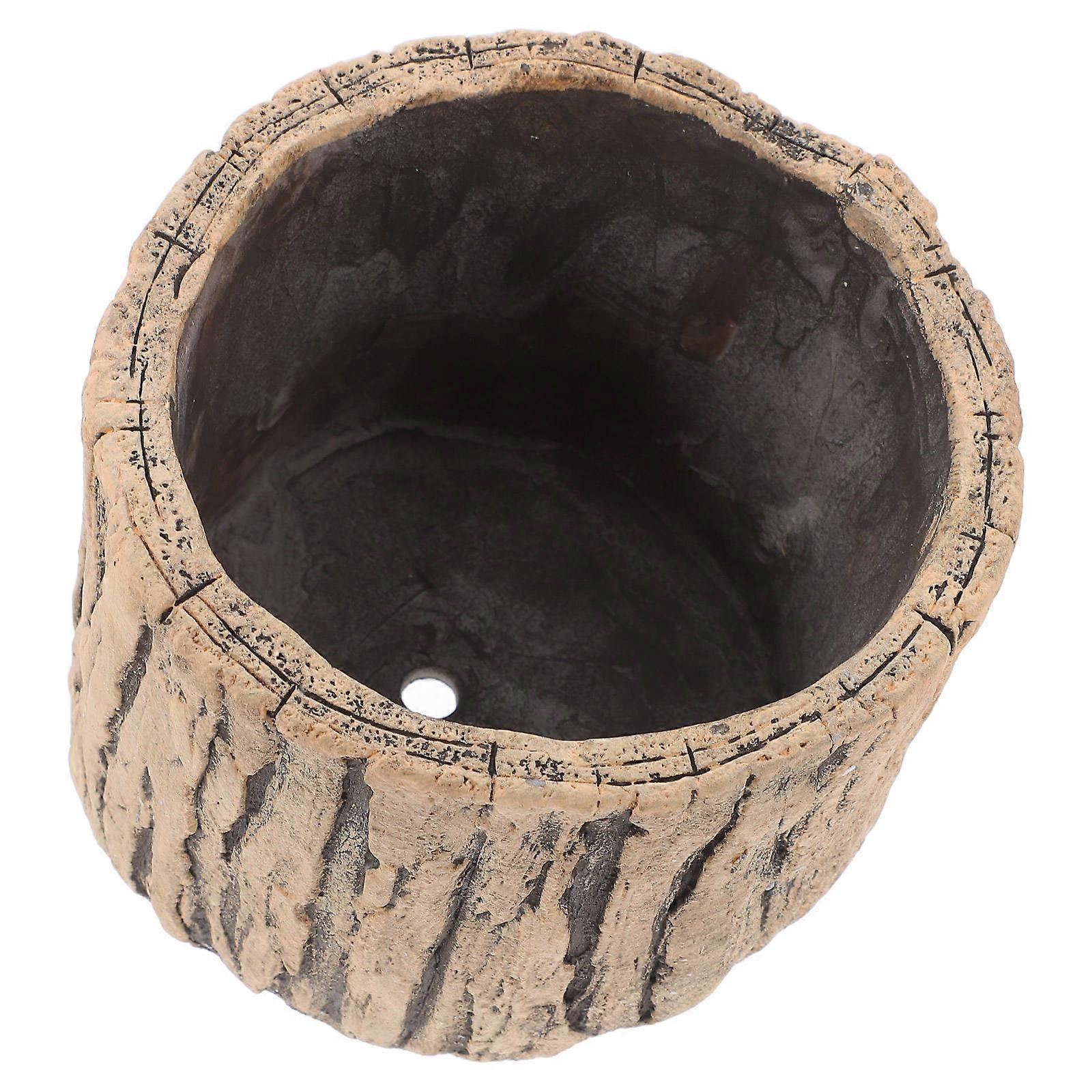 Rustic Wooden Planter Faux Bark Cement Planter For Office Desk Outdoor Garden Use 4.7×4.7×3.5in Greenery Display Weather Resistant 1Pcs