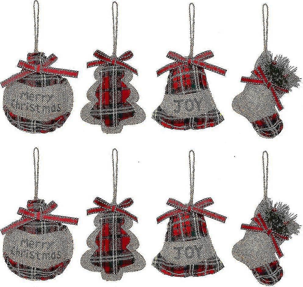 Rustic Christmas Tree Ornaments Stocking Decorations Burlap Country Christmas Stocking Ball Tree Bell With Trendy Red And
