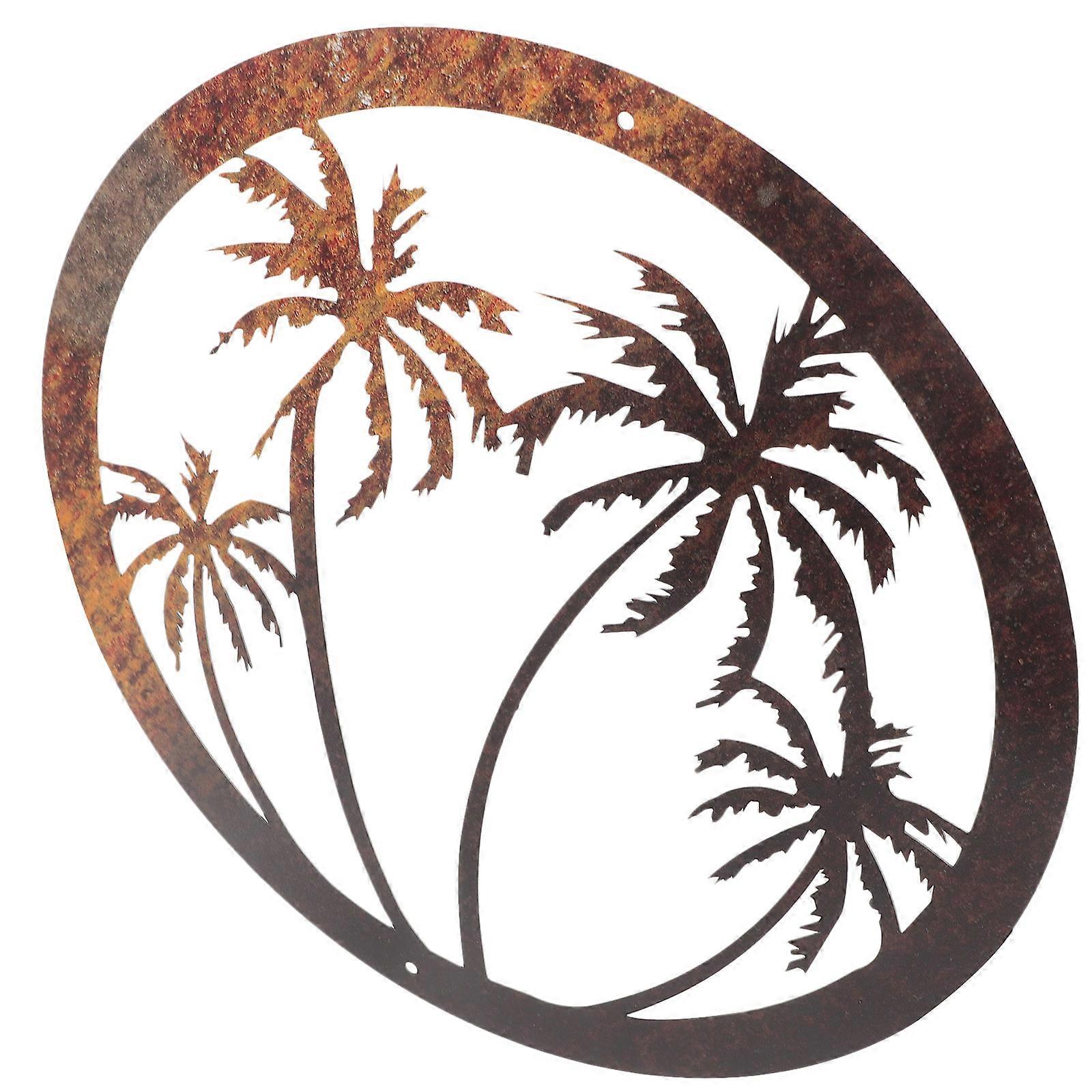 Rustic Metal Palm Tree Wall Decor Round Hanging Adornment for Home Office Garden Decoration Invigorating Palm Leaves Wall Art for Restaurant and More