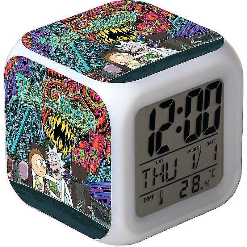 Rick And Morty Digital Alarm Clocka, Colorful Lights Alarm Clock Square Clock, Best Gift For Boys And Girls, Led Digital Alarm Clocks, Kids Room Decor